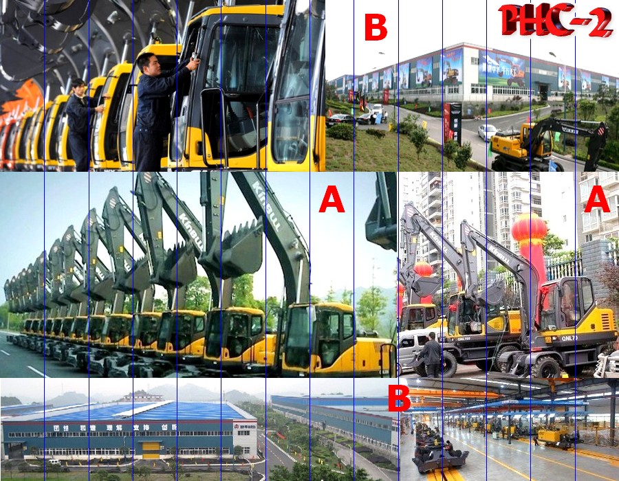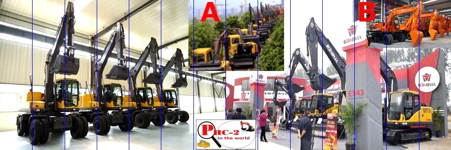 L'industriel CHONGQING QINNIU (KINBULL) est un des grands spécialistes de la pelle sur pneus et le lancement récent de sa dernière génération (photo de gauche) pour des poids allant jusqu'à près de 22 tonnes atteste à lui seul de cet état de fait. Les modèles de la marque sont des exemples du genre au point que même une concurrente Européenne aurait bien du "fil à retordre" à s'y attaquer (c'est ainsi) car ne l'oublions pas Chongqing Qinniu Kinbull a fait de ses engins sa grande spécialité et sa réputation en la matière n'est pas un hasard mais bien le fruit d'une forte et longue expérience sur le terrain auprès des utilisateurs les plus exigeants, développement des engins conjointement avec eux par ailleurs. Le succès de Chongqing Qinniu Kinbull est tel qu'il est à satutation dans tous les sens du terme au point de stocker des pelles aux abords de ses sites de production (photo A), les voitures n'arrivant même plus à entrer sur les sites pourtant gigantesques, les livraisons se comptent par des milliers de machines et son accord avec Dingsheng Tiangong autorisant ce dernier à commercialiser ses pelles en complément de ses propres gammes (photo B) n'est pas fait pour "arranger" la situation car des commandes importantes s'ajoutent sans cesse à celles de la marque initiale !.