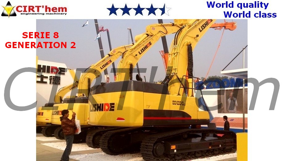 Le constructeur LISHIDE MACHINERY est un fort et long spécialiste de la pelle hydraulique sur chenilles et si sa réputation mondiale depuis très longtemps y est largement enviable le lancement voici peu de sa nouvelle série -8- de 2e génération (photos) ne fera qu'accentuer le fait. Cette gamme particulièrement moderne est à classer dans celles de "luxe" tellement le niveau haut de gamme est...haut de gamme!. Plus que jamais l'industriel est en train de s'attaquer à ses concurrents et cette série il faut le savoir est une des plus difficiles à combattre sur le terrain. Des pelles novatrices, respectueuses de l'environnement, fiables comme d'habitude, robustes et endurantes, productives dans les conditions les plus difficiles et bien entendu aux capacités et performances à fortement redouter!. Ces pelles sur chenilles high-tech de classe mondiale regroupent à elles seules toute l'expérience du fabricant en matière d'engins qualitatifs et qui font leurs preuves sur toute la planète. Cette puissante 40 tonnes sur les photos et pour seul exemple est absolument imbattable sur des points tels rapidité, souplesse, silence de fonctionnement et niveau de productivité, sa force hydraulique y étant par ailleurs spectaculaire!. Jusqu'à 76 tonnes l'industriel vient une nouvelle fois d'attester de son savoir-faire. Sur la photo -A- des acheteurs Européens.